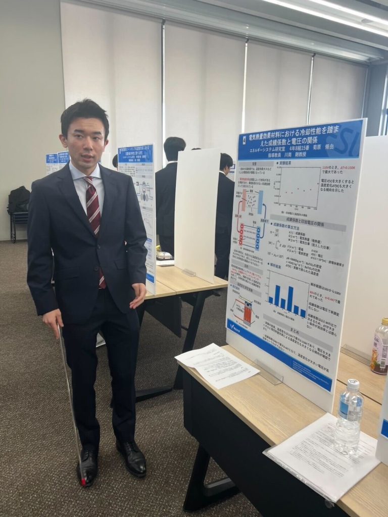 - 「電気熱量効果材料における冷却性能を踏まえた成績係数と電圧の関係」菊原 脩由